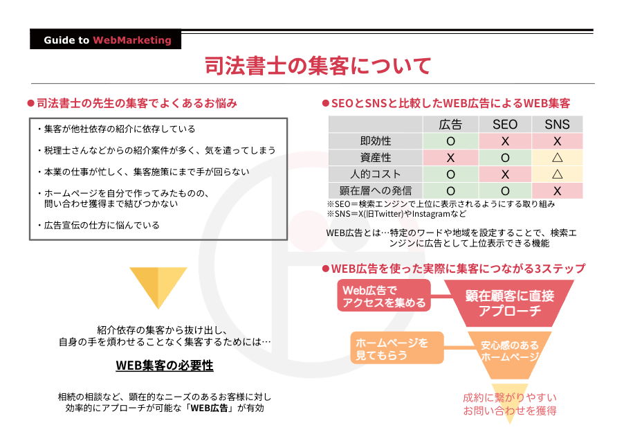 士業の集客で大々的に宣伝している